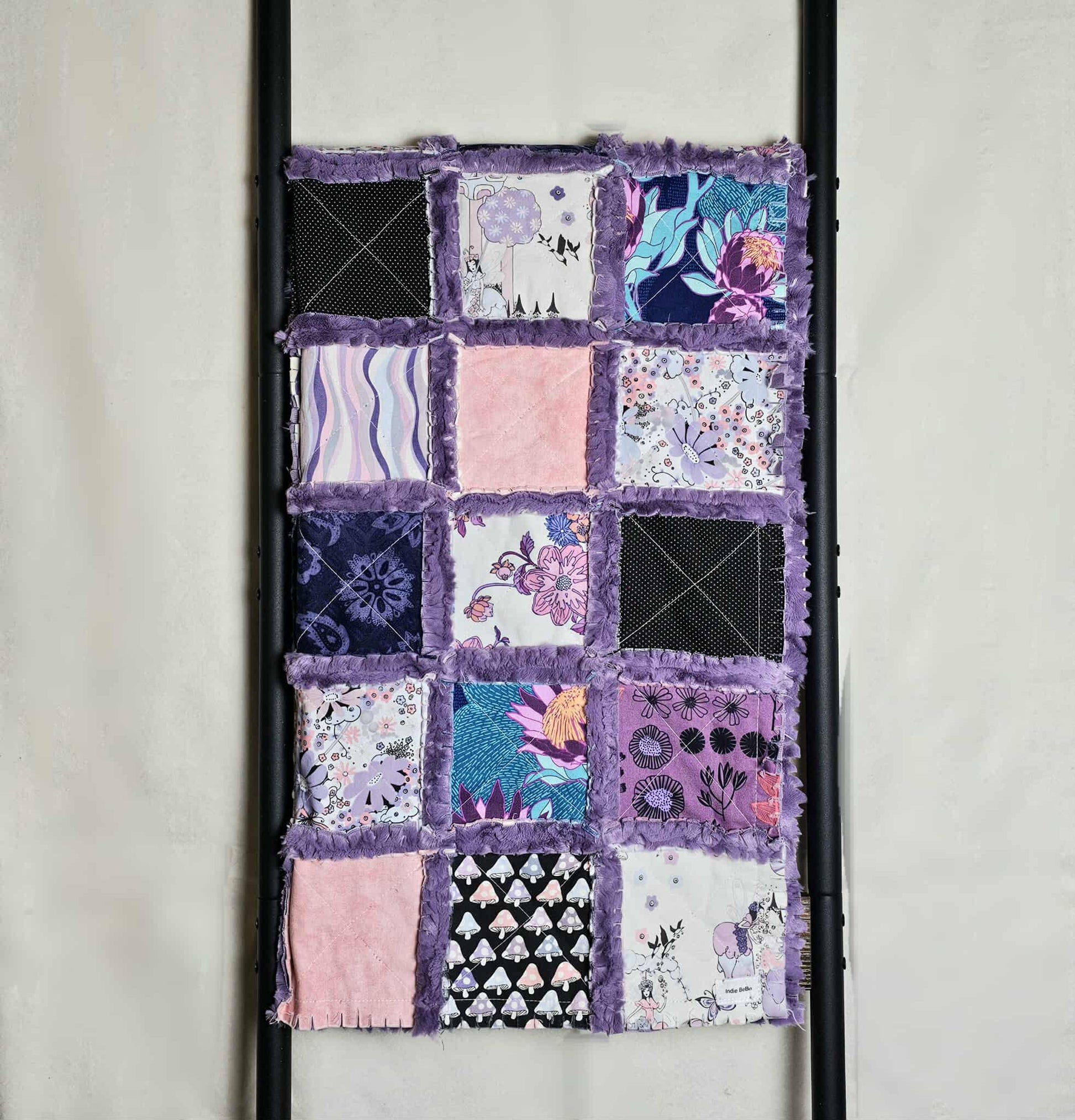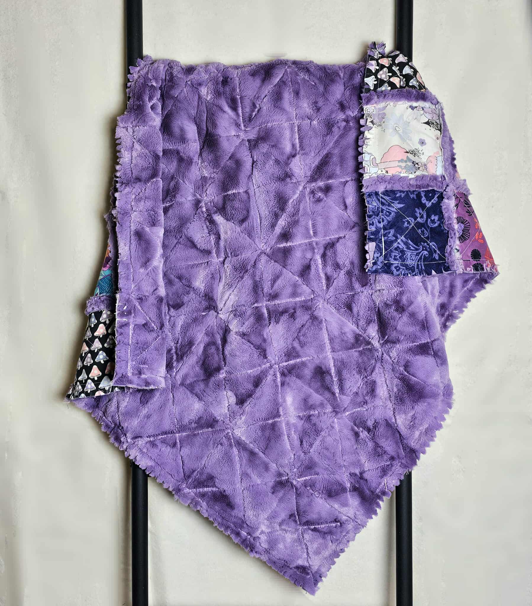 Beautiful and soft Baby rag quilt with designer cotton fabrics! Designer cotton fabrics on the front and super soft luxe cuddle minky fur on back.