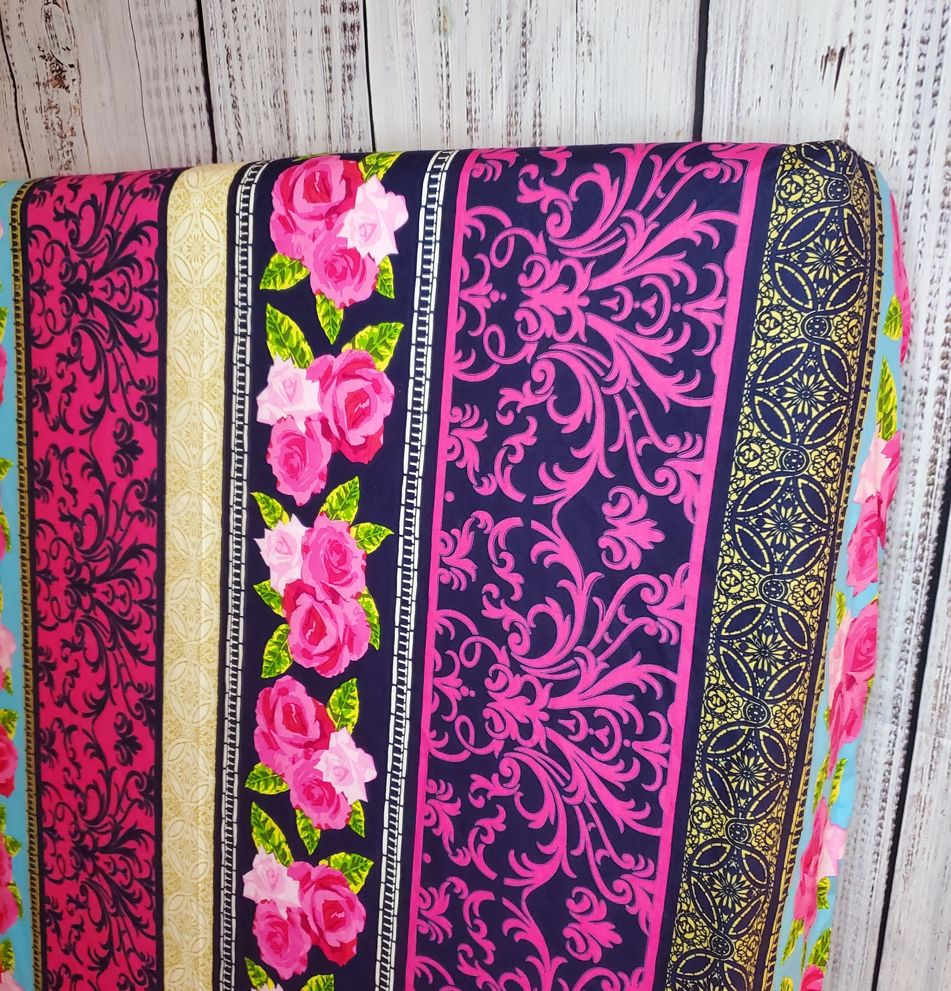 Crib Bedding, Pink Floral Crib Sheet, Crib Sheet Boho, Nursery Bedding, Nursery Decor, Baby Shower Gift, Floral Crib Bedding, Pink and Navy