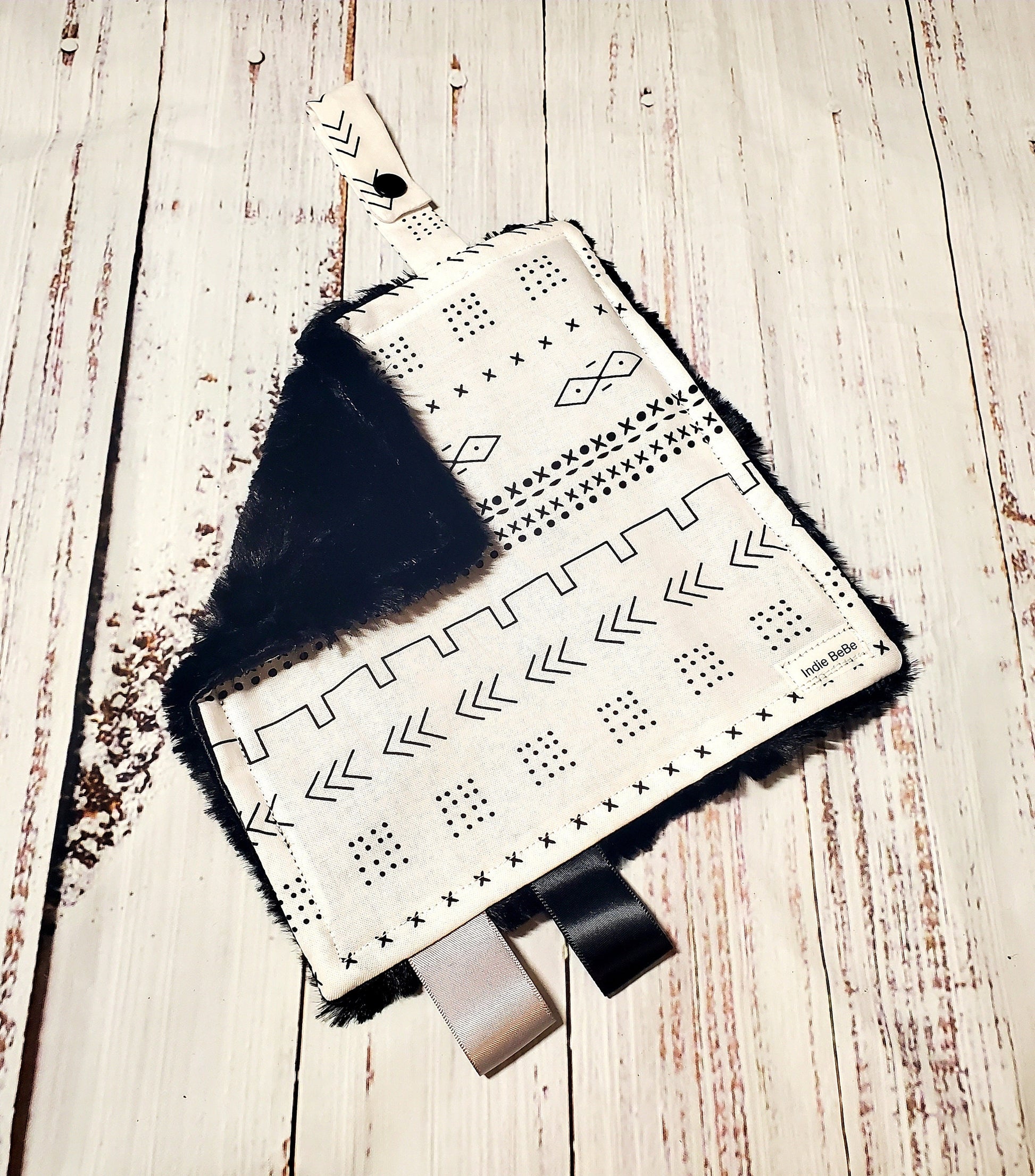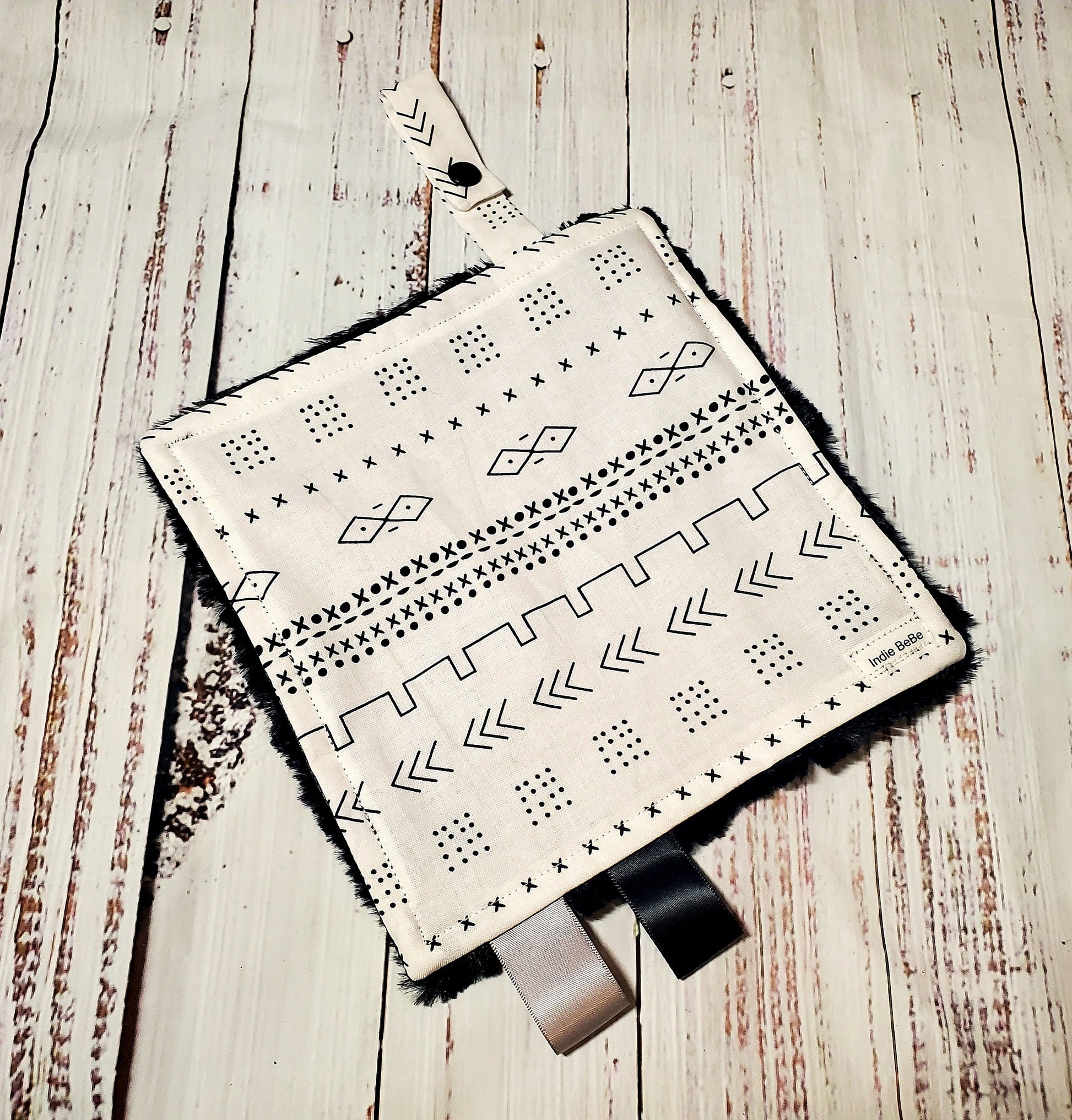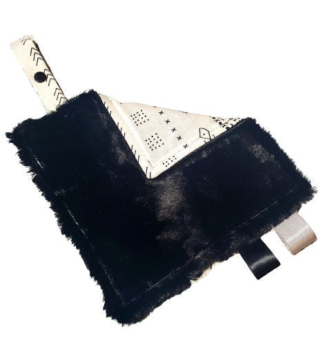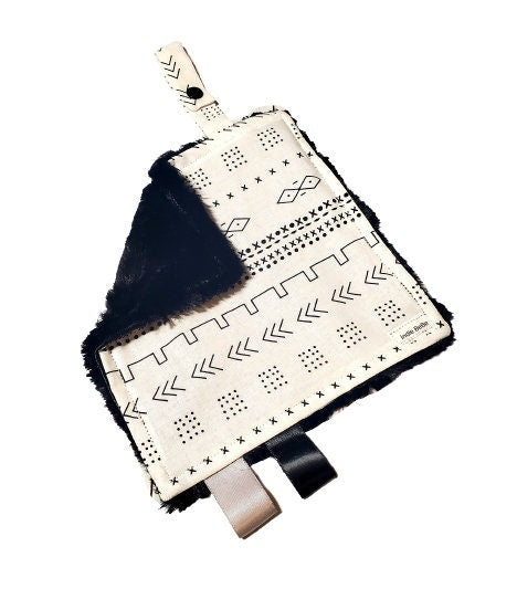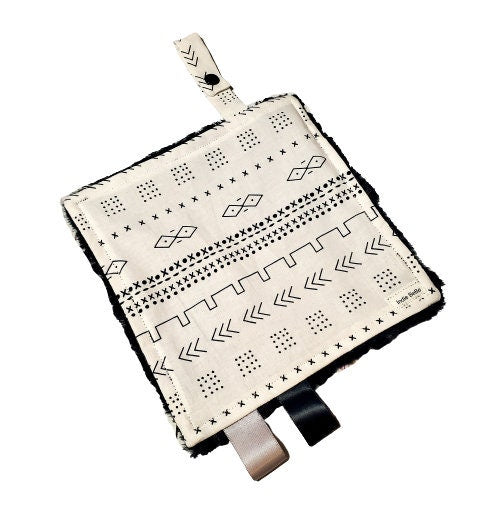 Crinkle Lovey, Black and White Mudcloth, Paci Holder, Mini Lovey, Pacifier Lovey, Pacifier Keeper, Baby Shower Gift, Handmade Baby Blanket