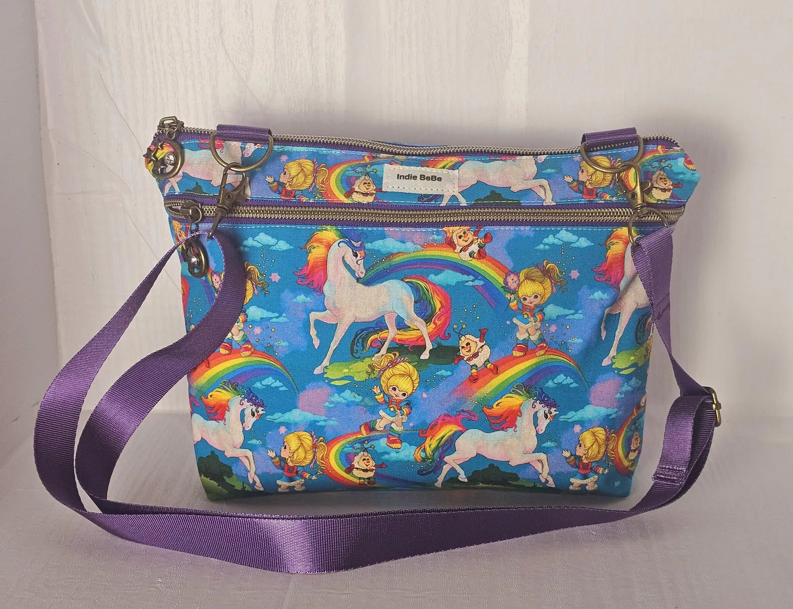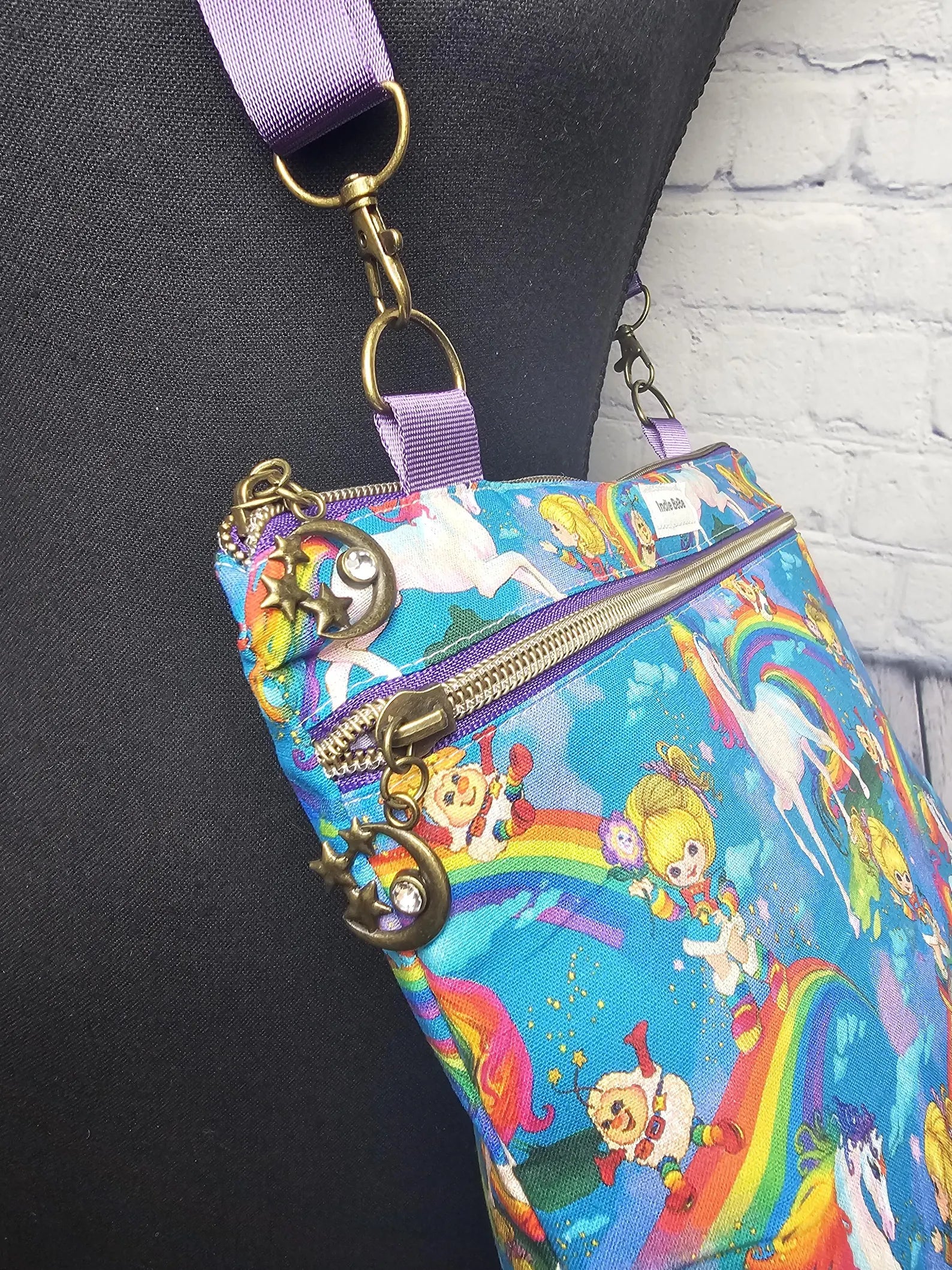 This reversible Crossbody purse made with Rainbow Brite fabric is perfect for adults, teens and kids.