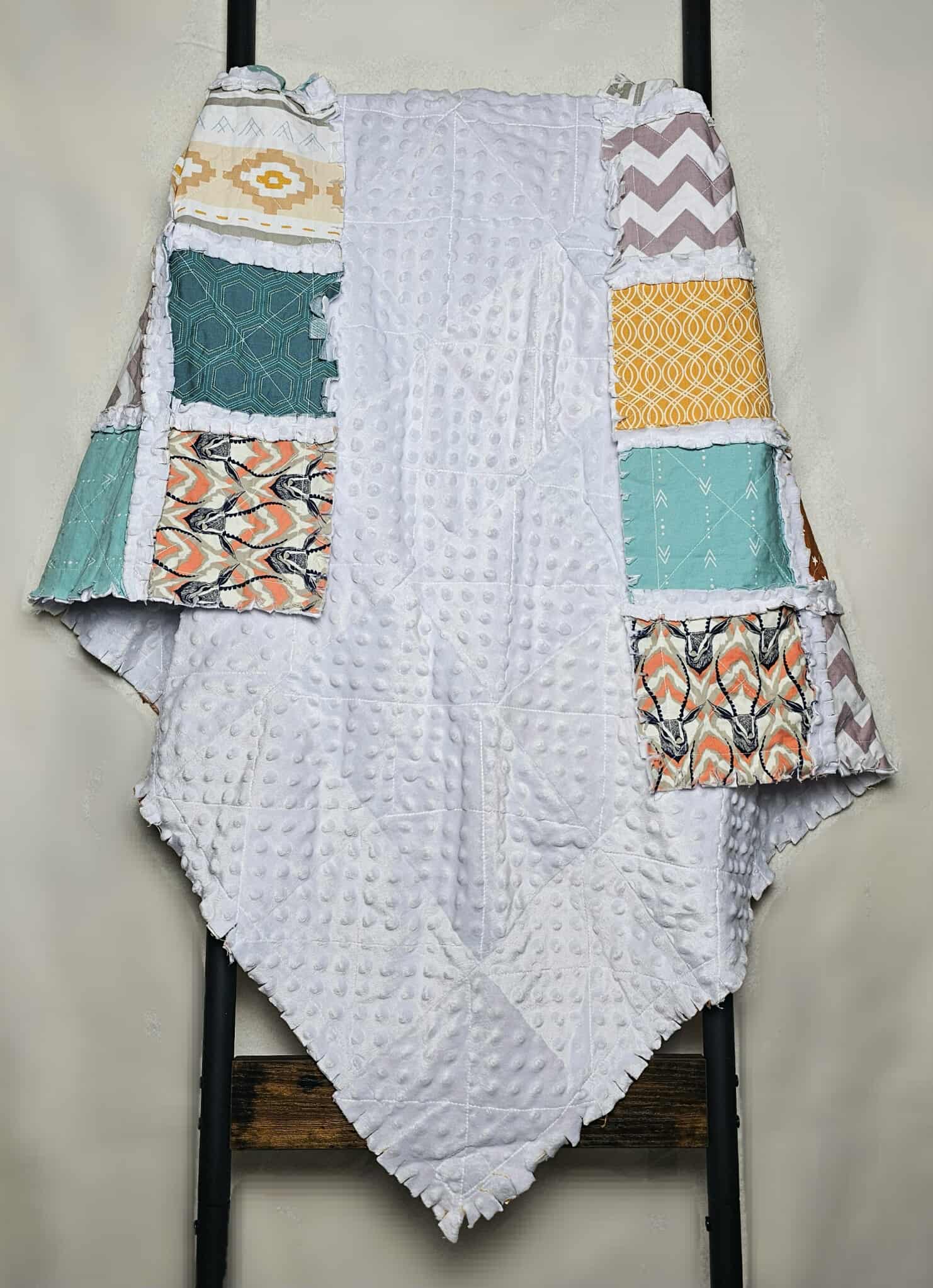 Beautiful and soft Baby rag quilt with designer cotton fabrics! Designer cotton fabrics on top layer, and super soft minky on back.