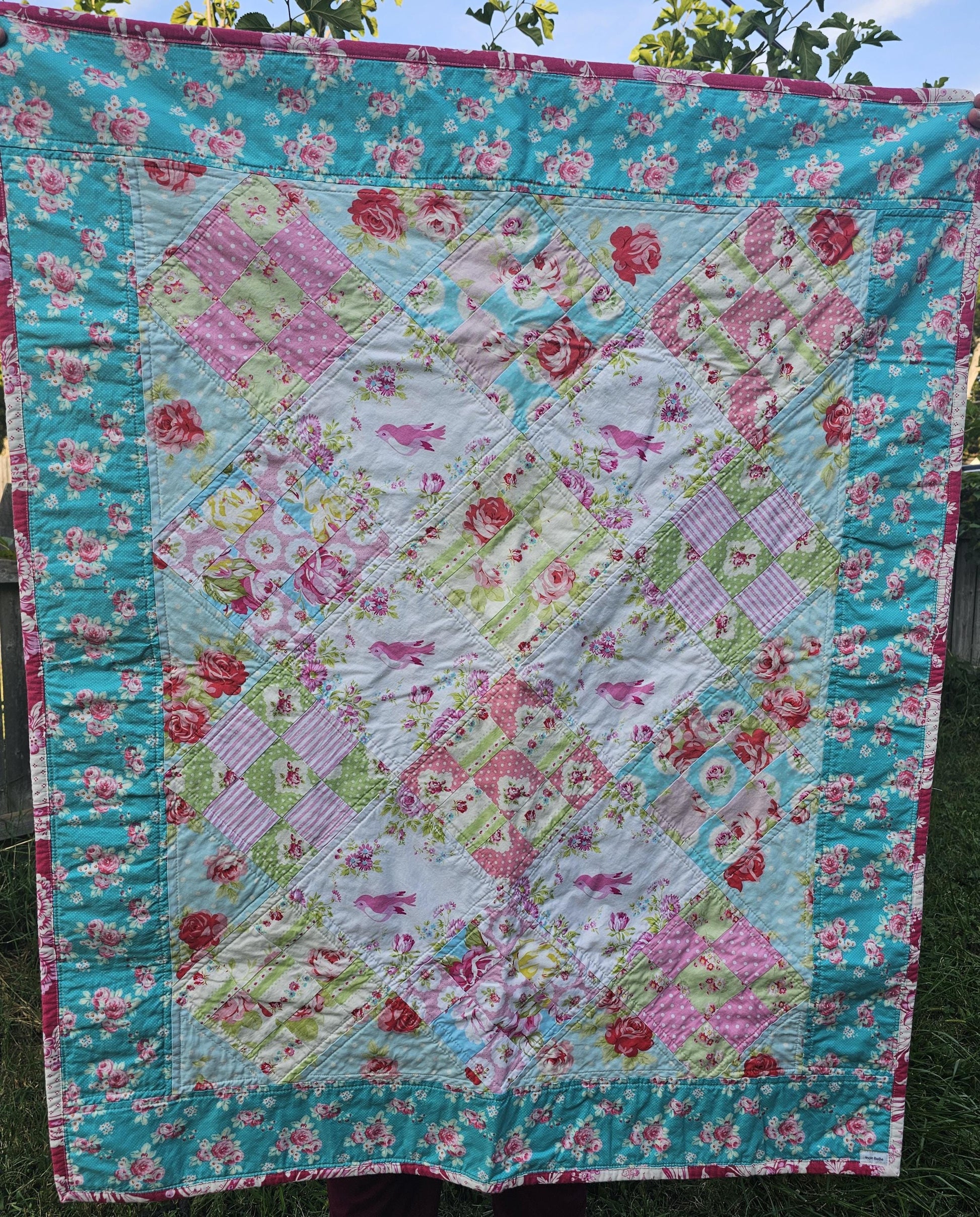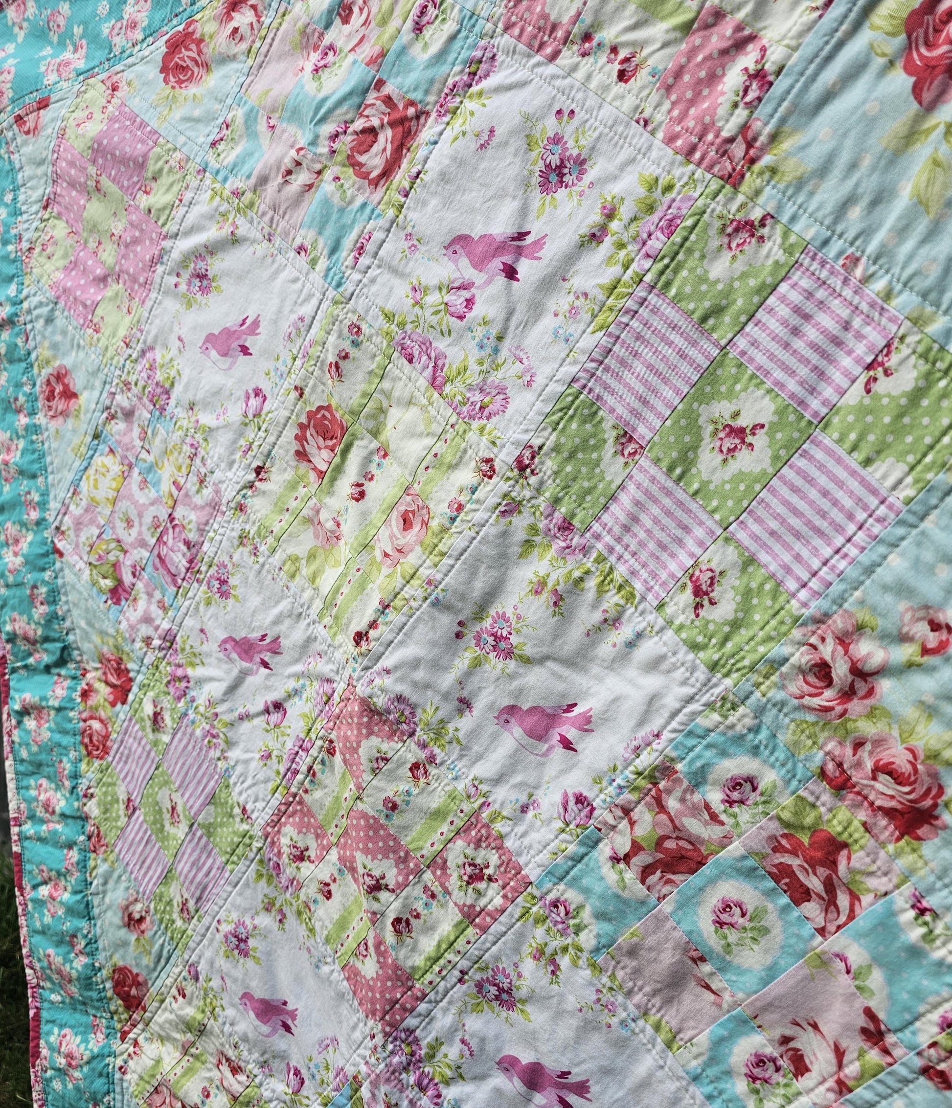 Handmade Floral Quilt, Shabby Chic Quilt, Throw Quilt, Patchwork Quilt, Crib Quilt, Toddler Quilt, Baby Shower Gift, Cabbage Roses Quilt