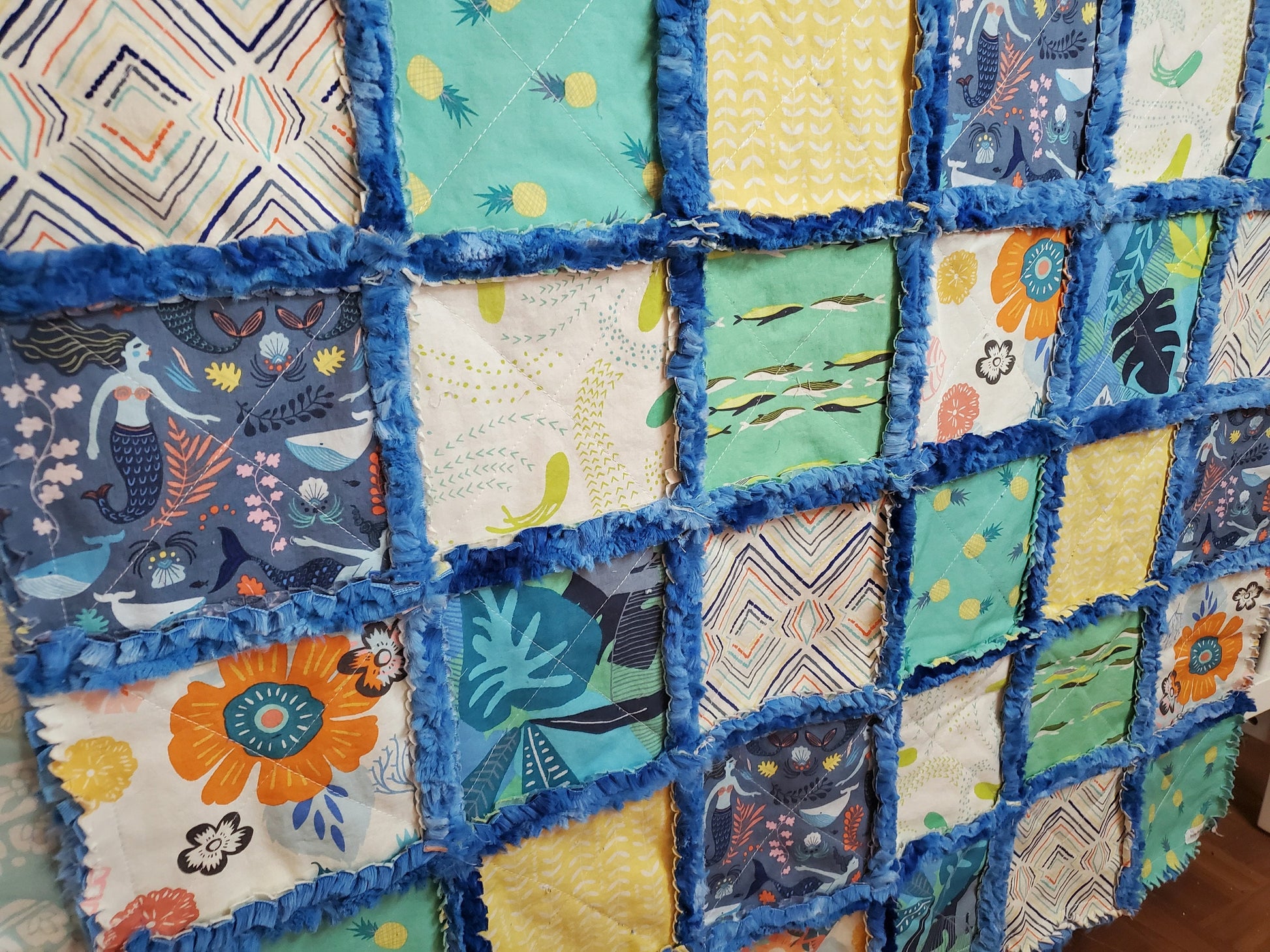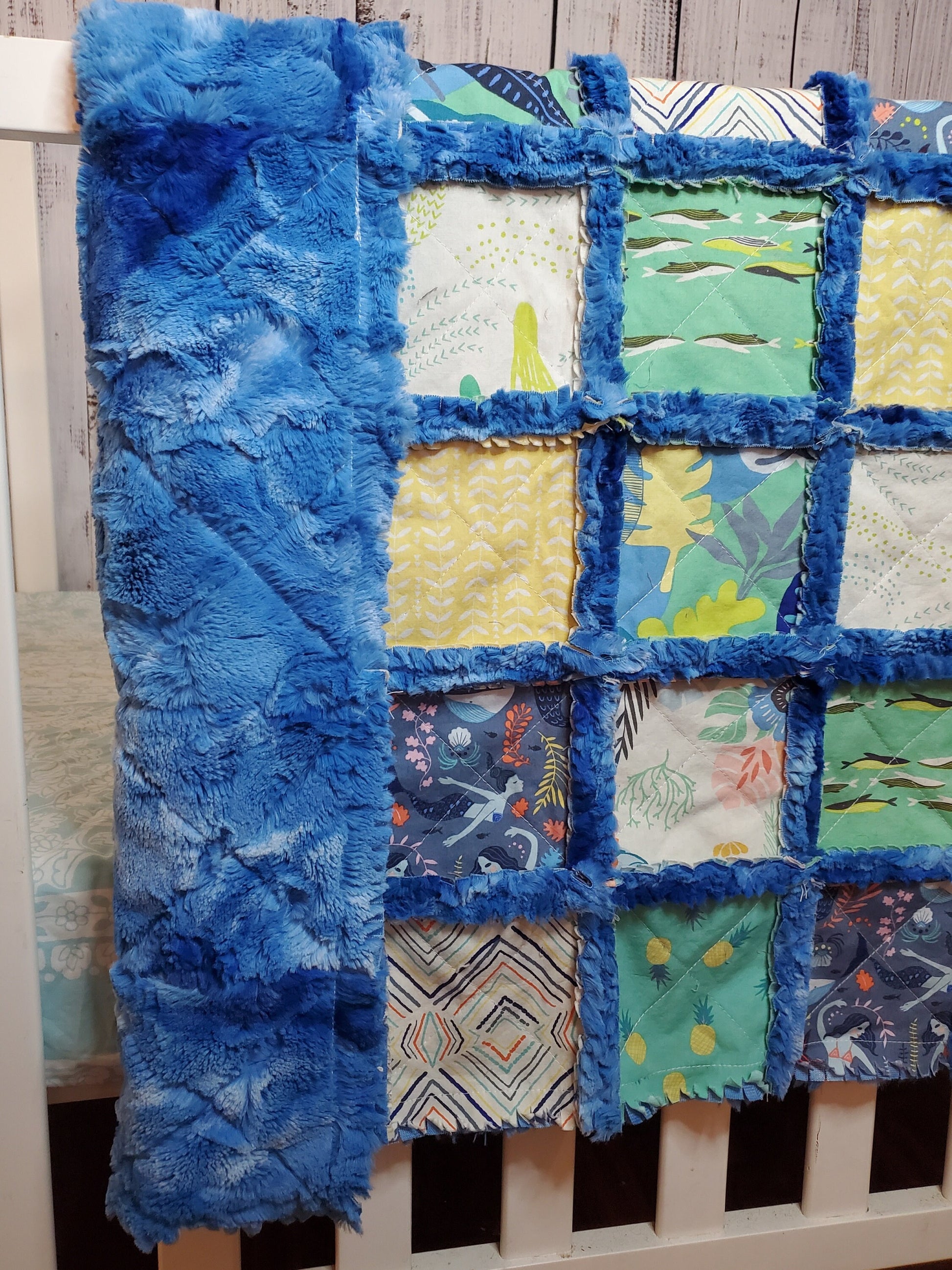 Handmade Patchwork Crib Quilt, Mermaid Quilt, Boho Rag Quilt, Floral, Sirena Mermaid, Baby Quilt, Crib Bedding, Witchy Gift, Nursery Bedding