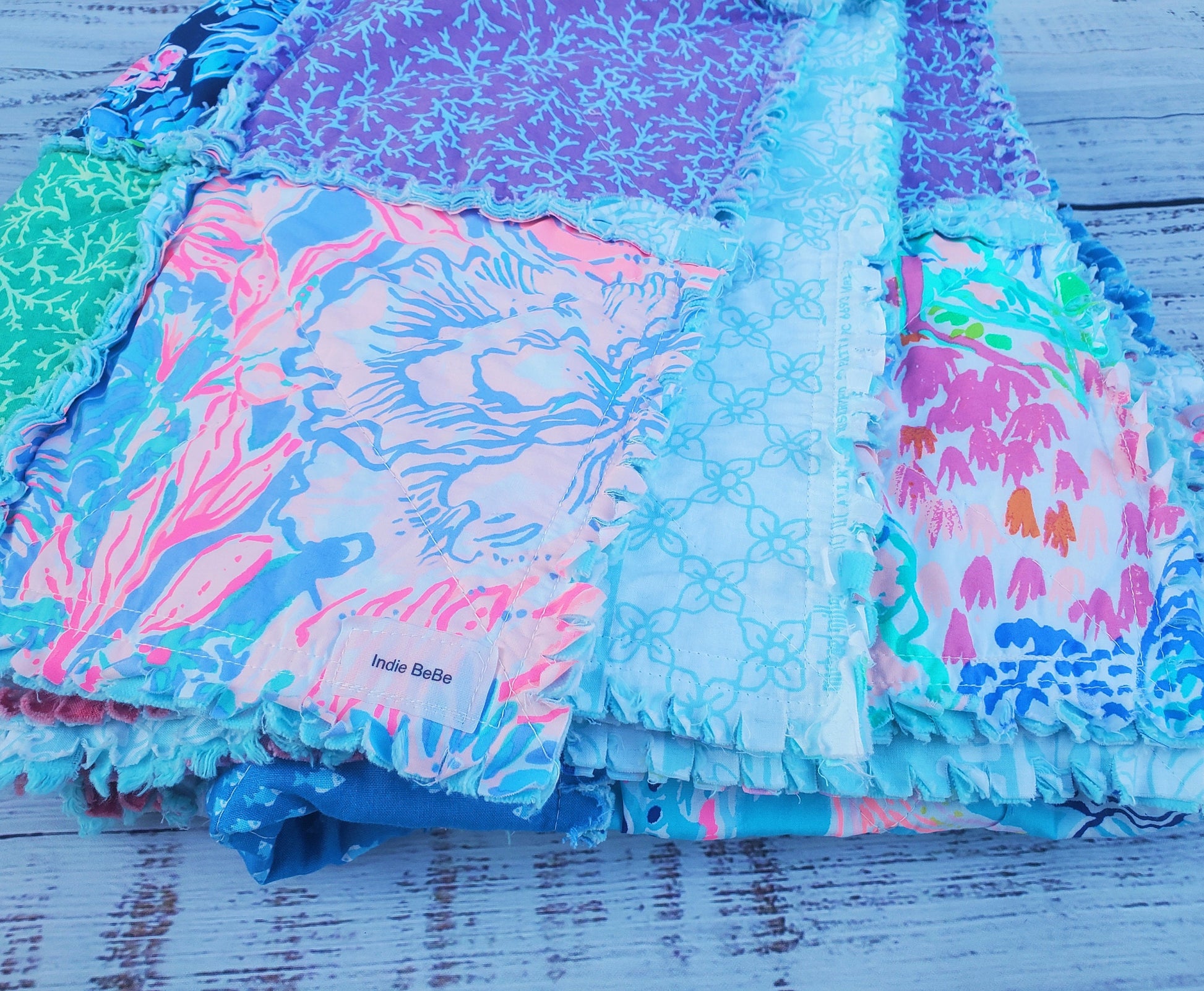 Handmade Quilt, Lilly Quilt, Rag Quilt Throw, Gifts for Her, Mothers Day Gift, Beach Quilt, Preppy Quilt, Housewarming Gift, Mermaids Quilt