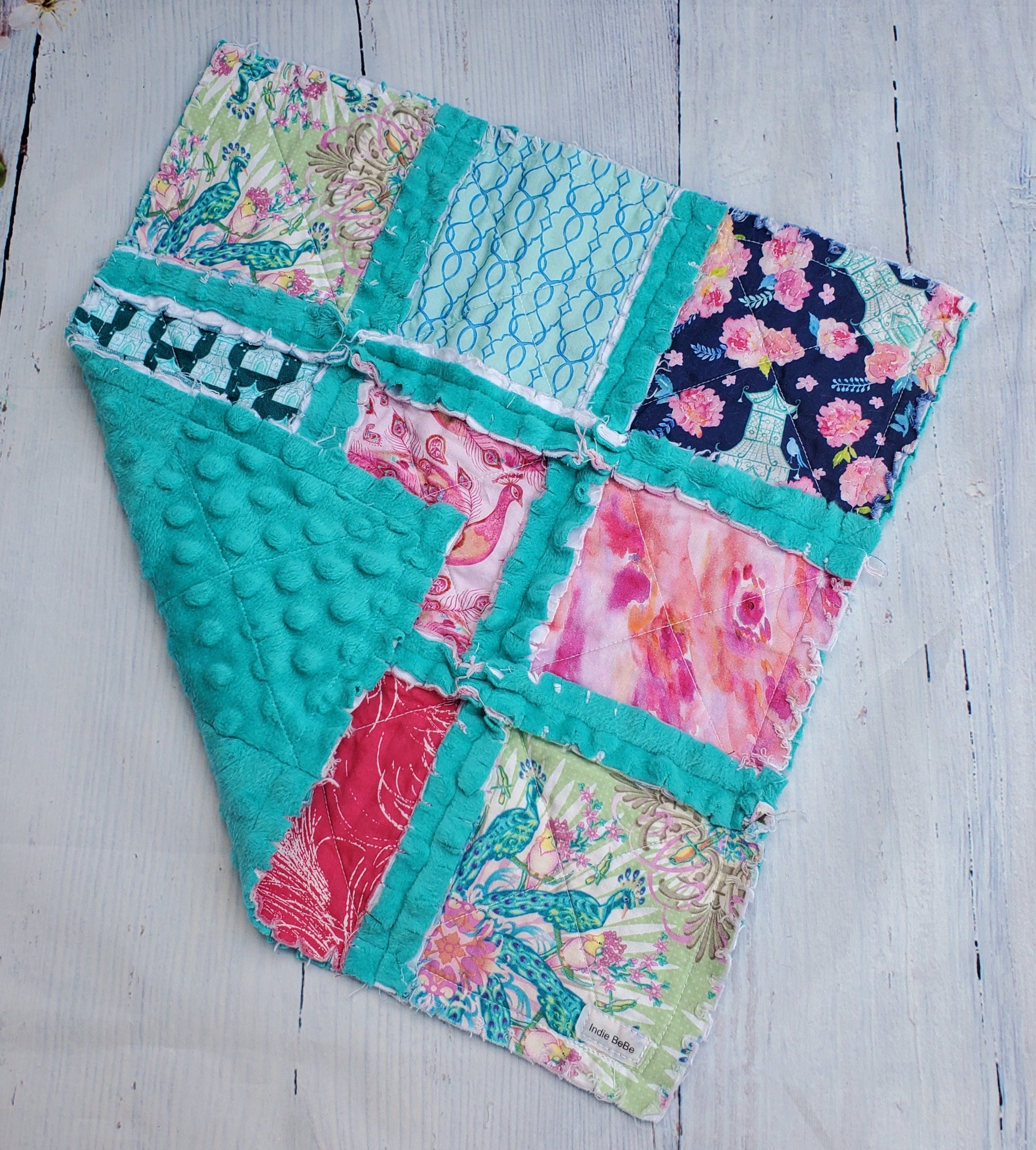 Beautiful and soft Baby rag quilt with designer cotton fabrics! Designer cotton fabrics on the front and super soft minky dot on back.