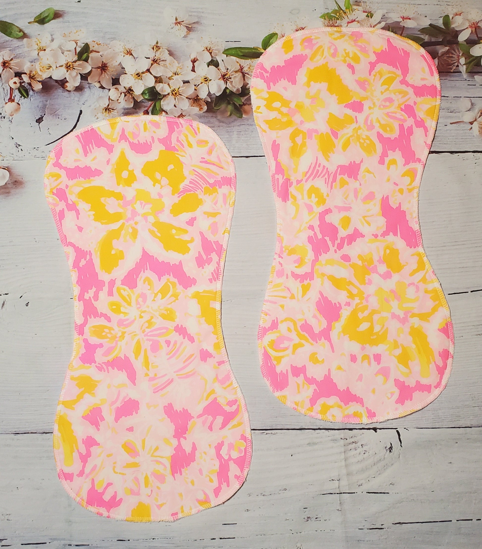 This super cute and stylishly contoured burp cloth set is perfect for even the messiest spits and spills. No more bulky burp cloths that always seem to fall off your shoulder or get in your way! These burp cloths make the perfect baby shower gift, especially when paired with a lovey or minky blanket!