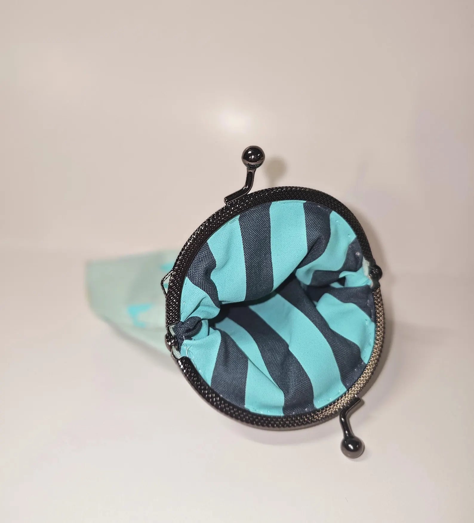 This is a must have, an adorable and useful kiss lock coin purse. They are made of two layers 100% cotton fabric. The both sides are interfaced for stability and style. The lining fabric coordinates with the outer fabric style. Each pouch has a kiss lock metal frame with a study snap to keep your items secure. These adorable and fun coins purses are functional and convenient for many different uses: cash, coins, meds, keys, vape, earbuds and many other small items.
