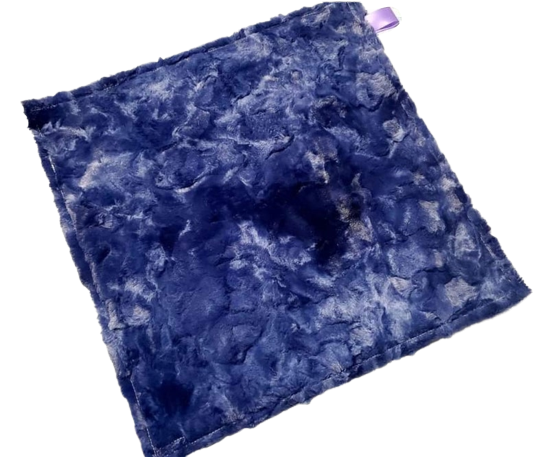 These new lovies feature a deluxe minky fur that is by far the softest and most luxurious to be found! The front is a designer cotton fabric that is sure to catch the eye of your little one and help to entertain. A satin ribbon loop is securely attached by being stitched multiple times to make sure it will not move, as is the label. Measuring approximately 17"×17" it is the perfect size for baby or toddler to bring anywhere!