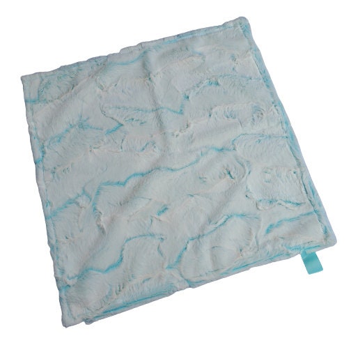 These new lovies feature a deluxe minky fur that is by far the softest and most luxurious to be found! The front is a designer cotton fabric that is sure to catch the eye of your little one and help to entertain. A satin ribbon loop is securely attached by being stitched multiple times to make sure it will not move, as is the label. Measuring approximately 17"×17" it is the perfect size for baby or toddler to bring anywhere!