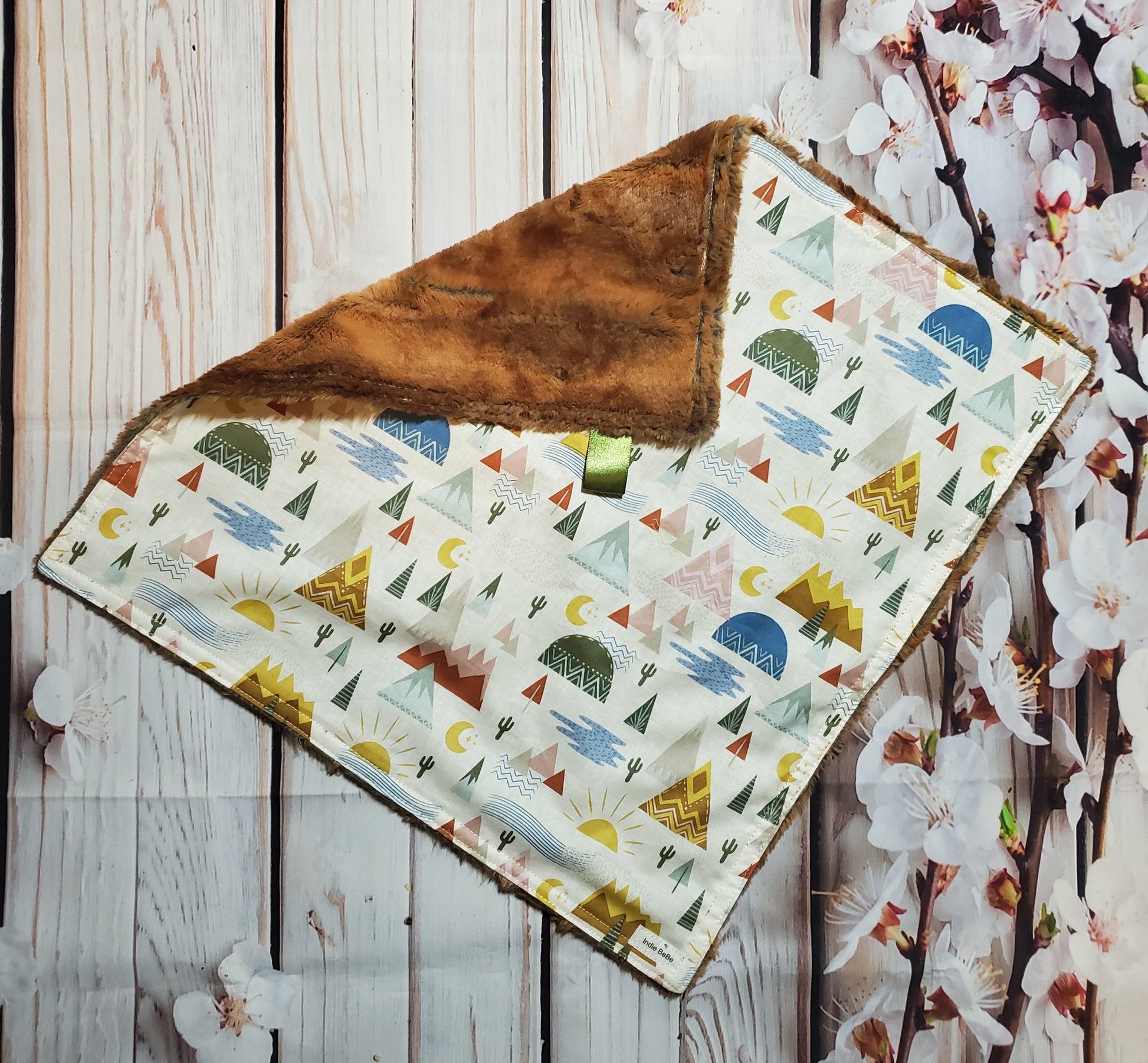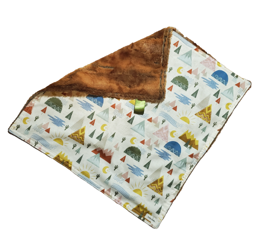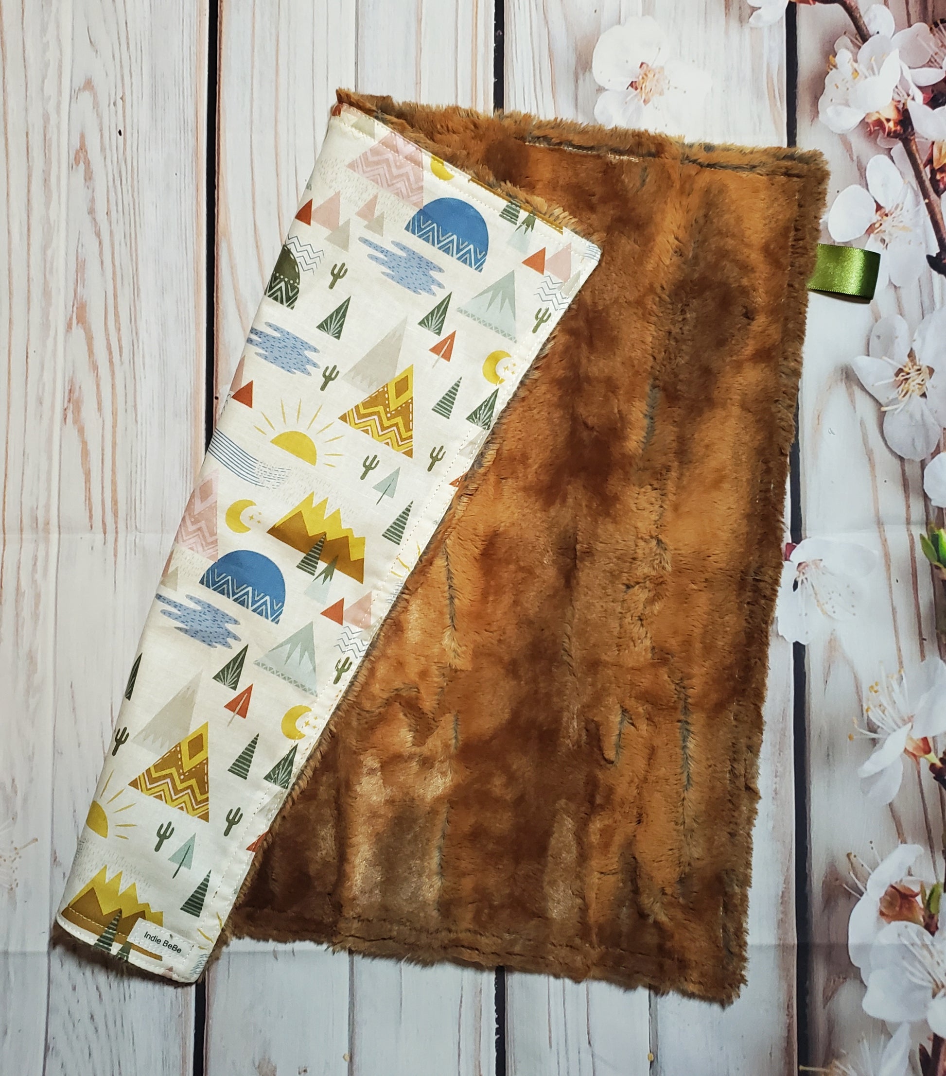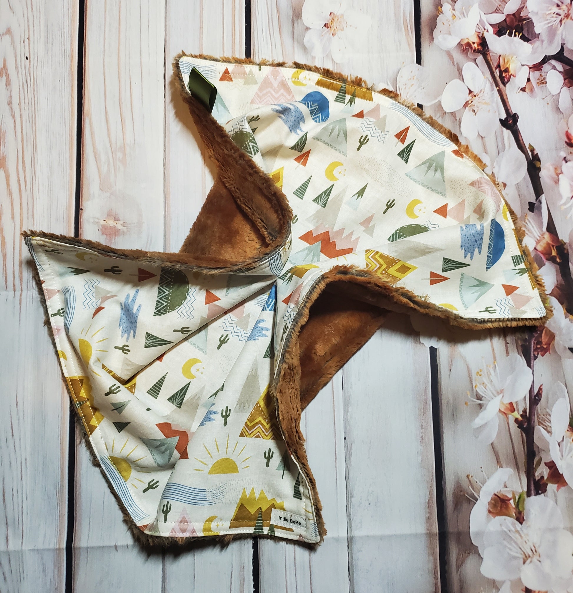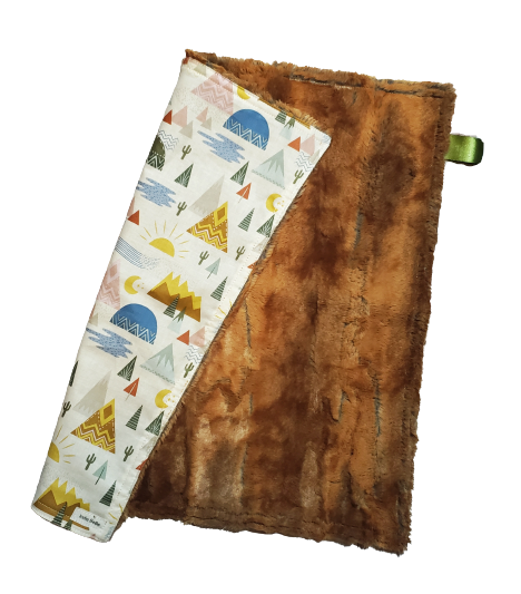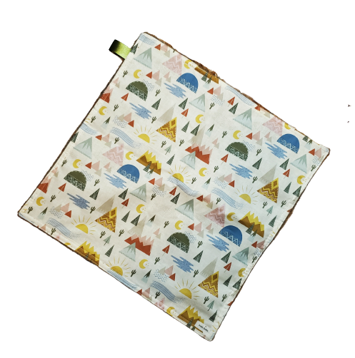 These new lovies feature a deluxe minky fur that is by far the softest and most luxurious to be found! The front is a designer cotton fabric that is sure to catch the eye of your little one and help to entertain. A satin ribbon loop is securely attached by being stitched multiple times to make sure it will not move, as is the label. Measuring approximately 17"×17" it is the perfect size for baby or toddler to bring anywhere!