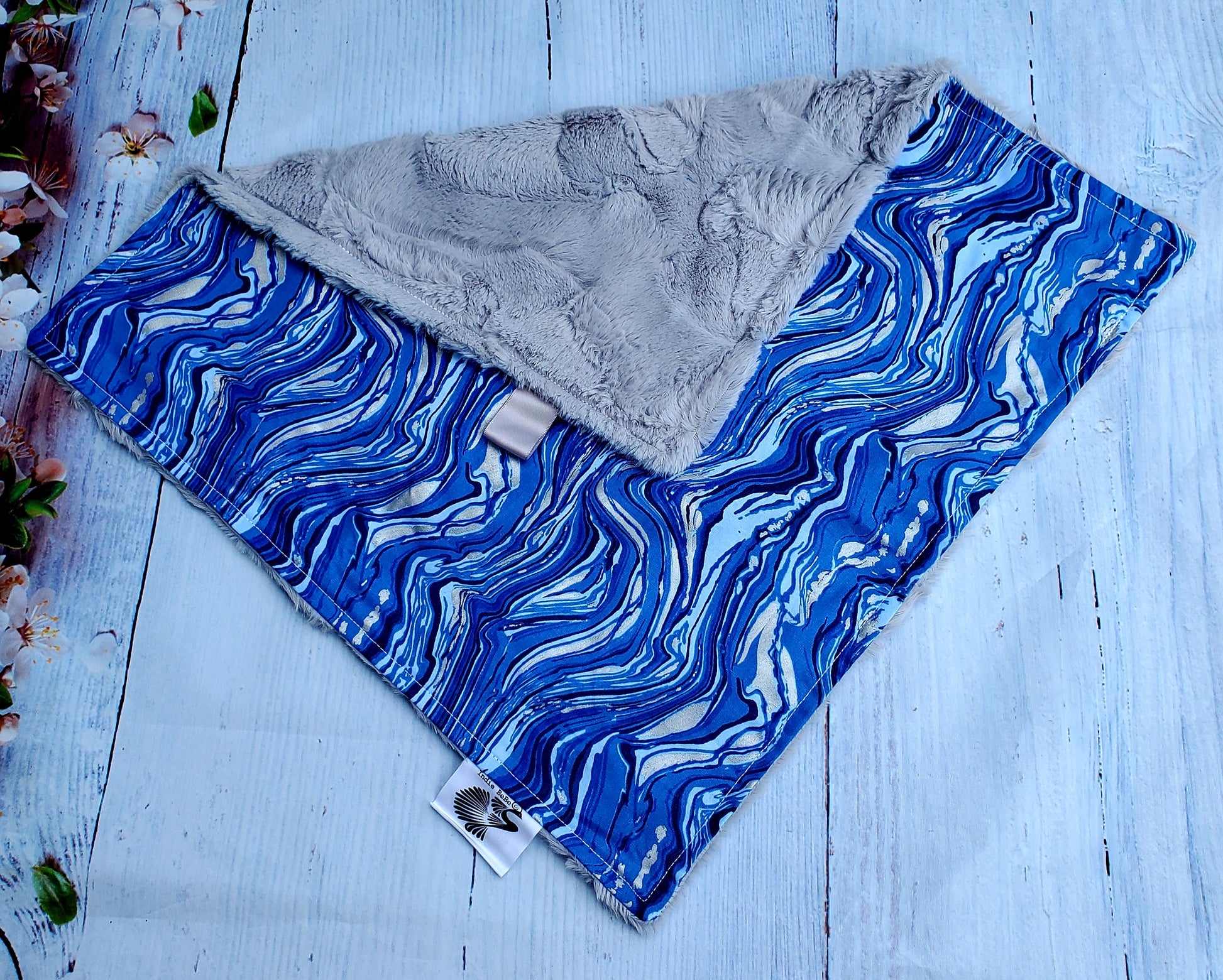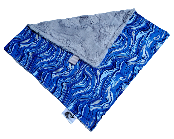 These new lovies feature a deluxe minky fur that is by far the softest and most luxurious to be found! The front is a designer cotton fabric that is sure to catch the eye of your little one and help to entertain. A satin ribbon loop is securely attached by being stitched multiple times to make sure it will not move, as is the label. Measuring approximately 17"×17" it is the perfect size for baby or toddler to bring anywhere!