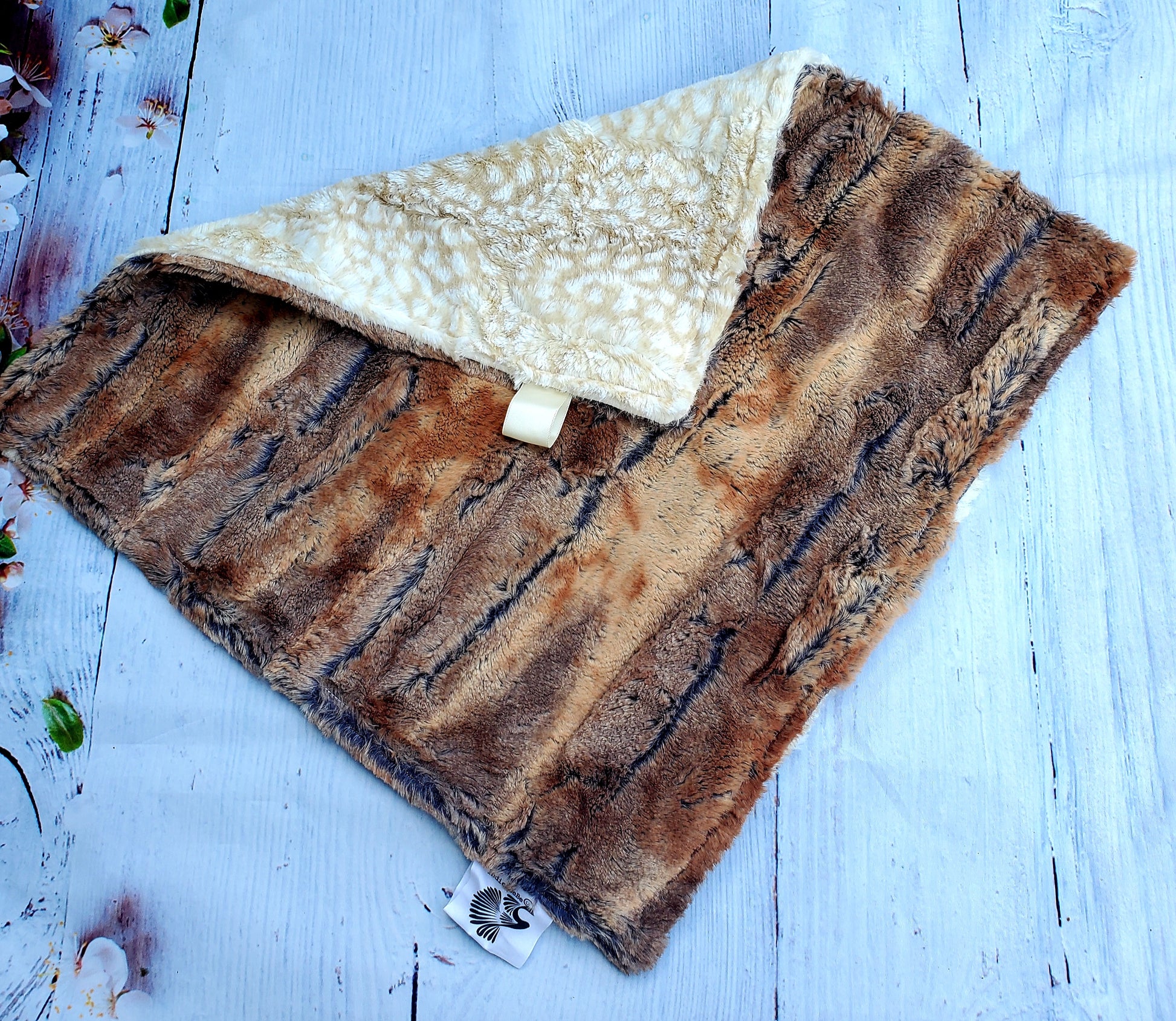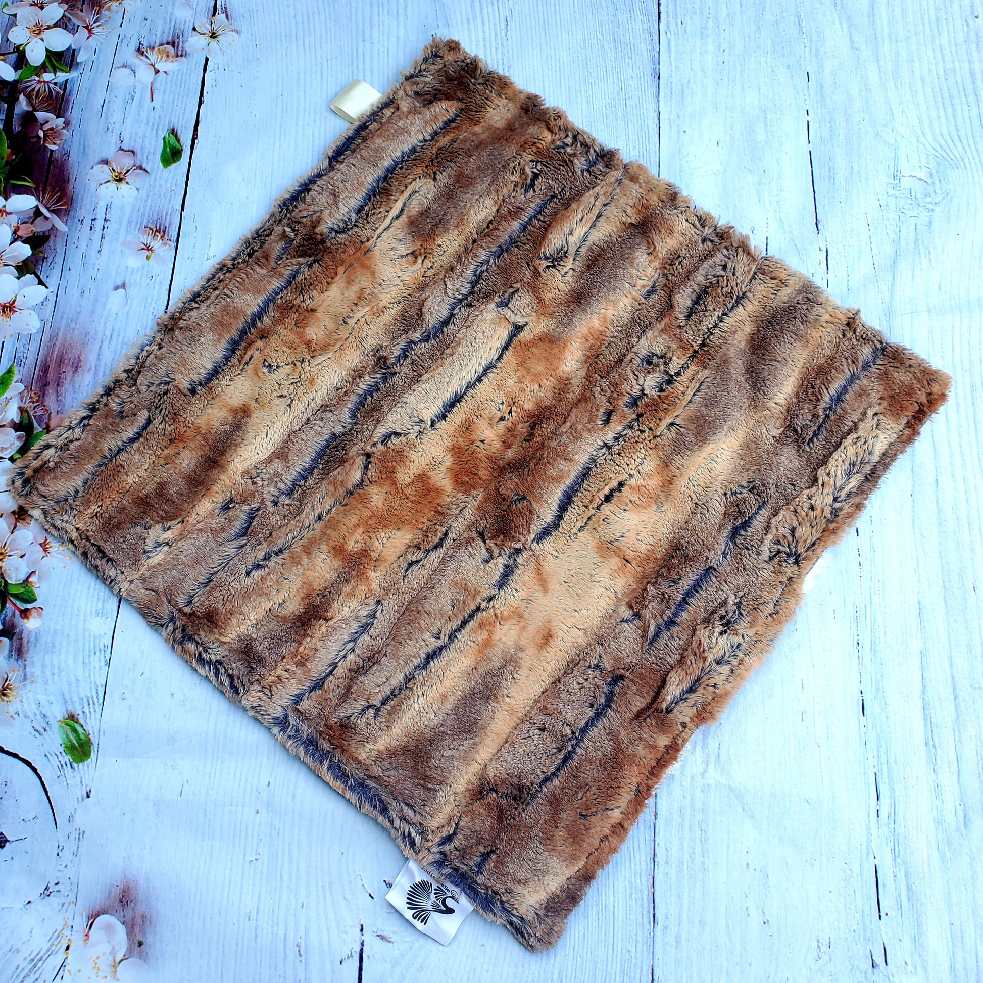 These new lovies feature a deluxe minky fur that is by far the softest and most luxurious to be found! A satin ribbon loop is securely attached by being stitched multiple times to make sure it will not move, as is the label. Measuring approximately 17"×17" it is the perfect size for baby or toddler to bring anywhere!