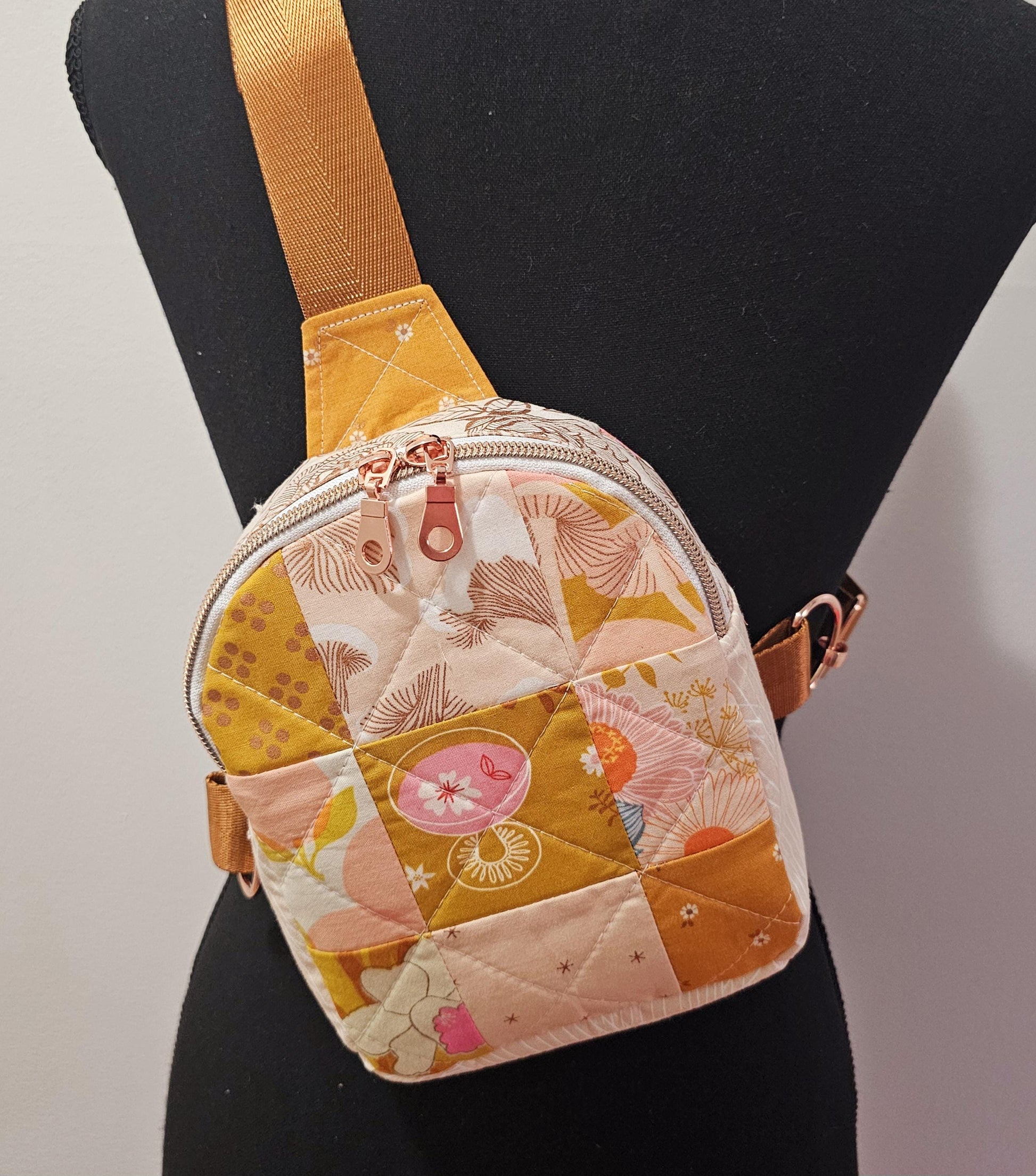 This patchwork Mav Pack Sling Crossbody backpack is suitable for adults, teens and kids.