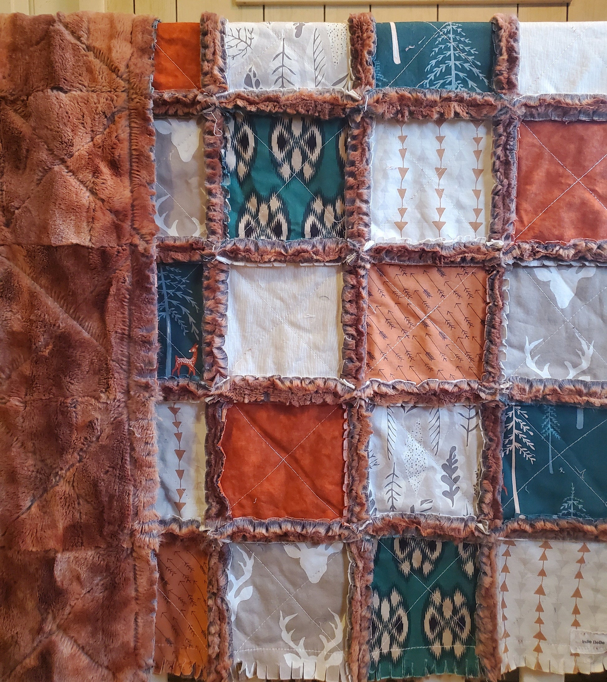 Patchwork Crib Quilt, Crib Bedding, Minky Rag Quilt, Woodland Animals Quilt, Baby Boy Quilt, Crib Bedding, Minky Blanket, Nursery Bedding