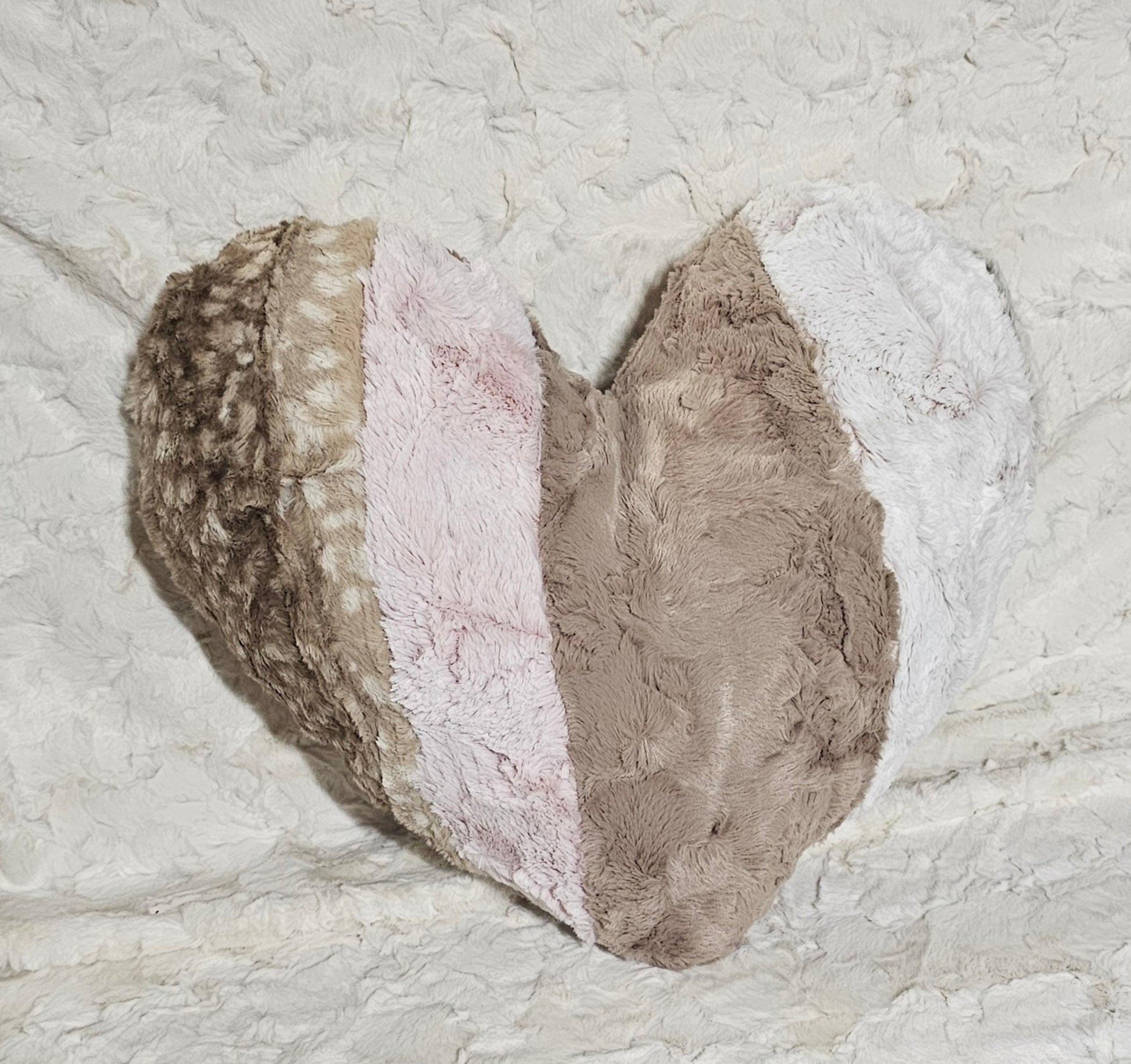 Introducing our new, patchwork, luxurious heart stuffy. This stuffy is made of the highest quality Minky (Shannon Fabrics Luxe Cuddle) fabric. Hand cut & sewn, each one different, these heart stuffies are a Minky lovers dream as they combine many different prints in one pillow!
