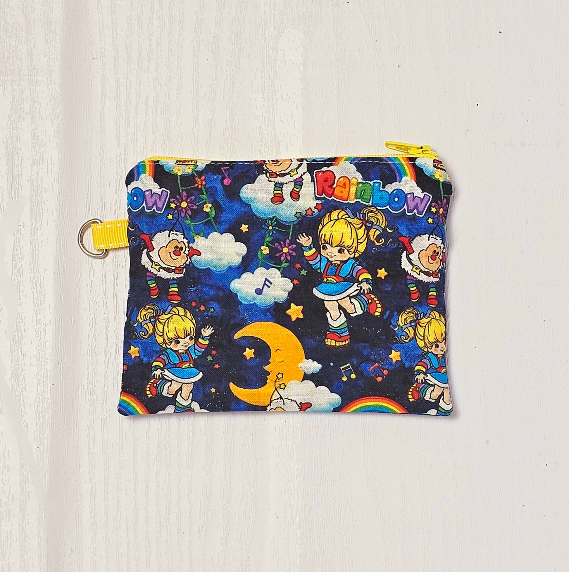 Small Fabric Zipper Pouch, Purse organizer, Vintage Rainbow Brite, Handmade Lined Zipper Pouch, Gift Card Coin Bag, Rainbow Purse, 1980s