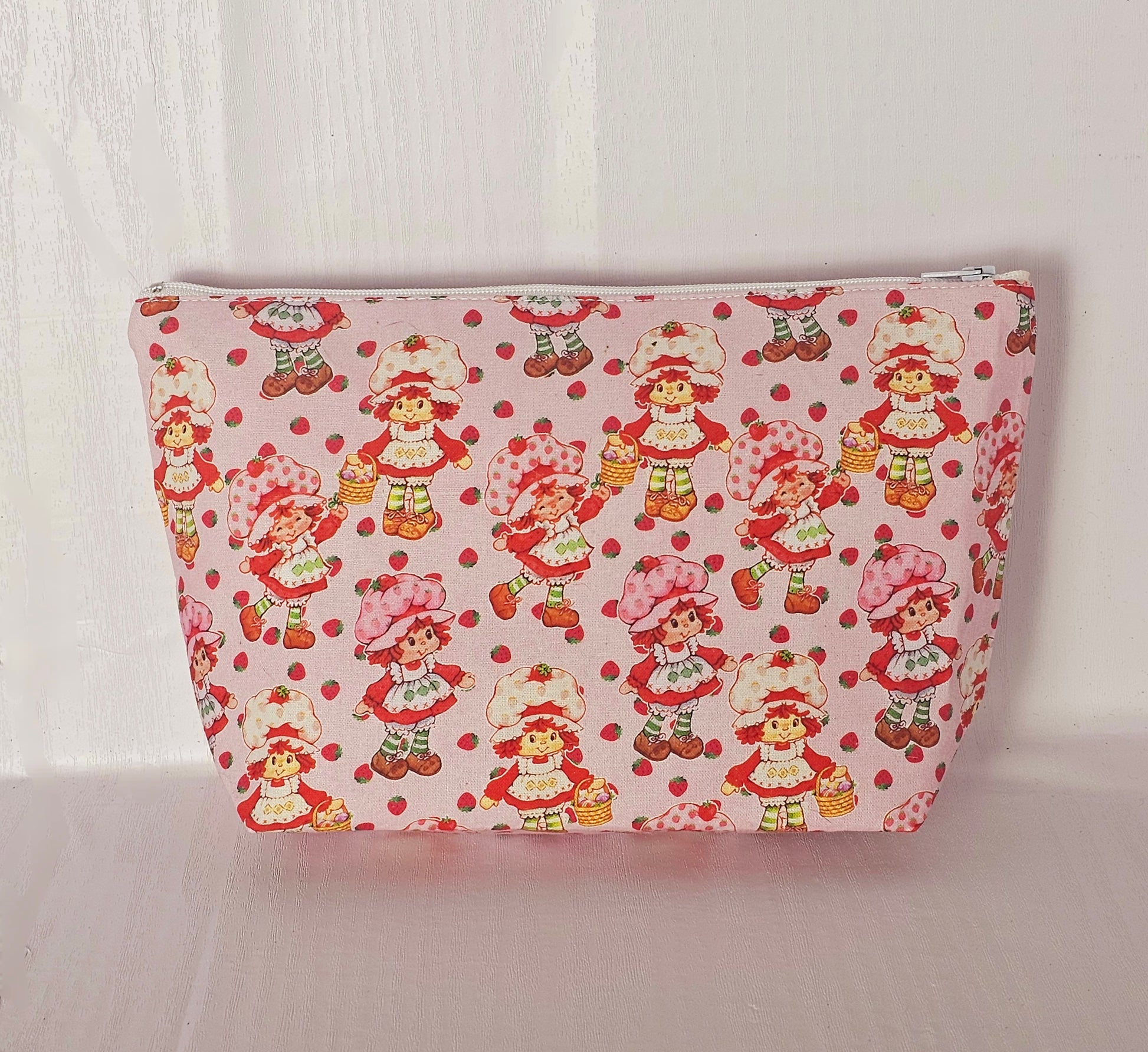 Strawberry Shortcake Zippered Pouch, Cosmetic Bag, Toiletry Bag, Gifts for Her, Unique Gift, Handmade Quilted Pouch, Strawberry Gift