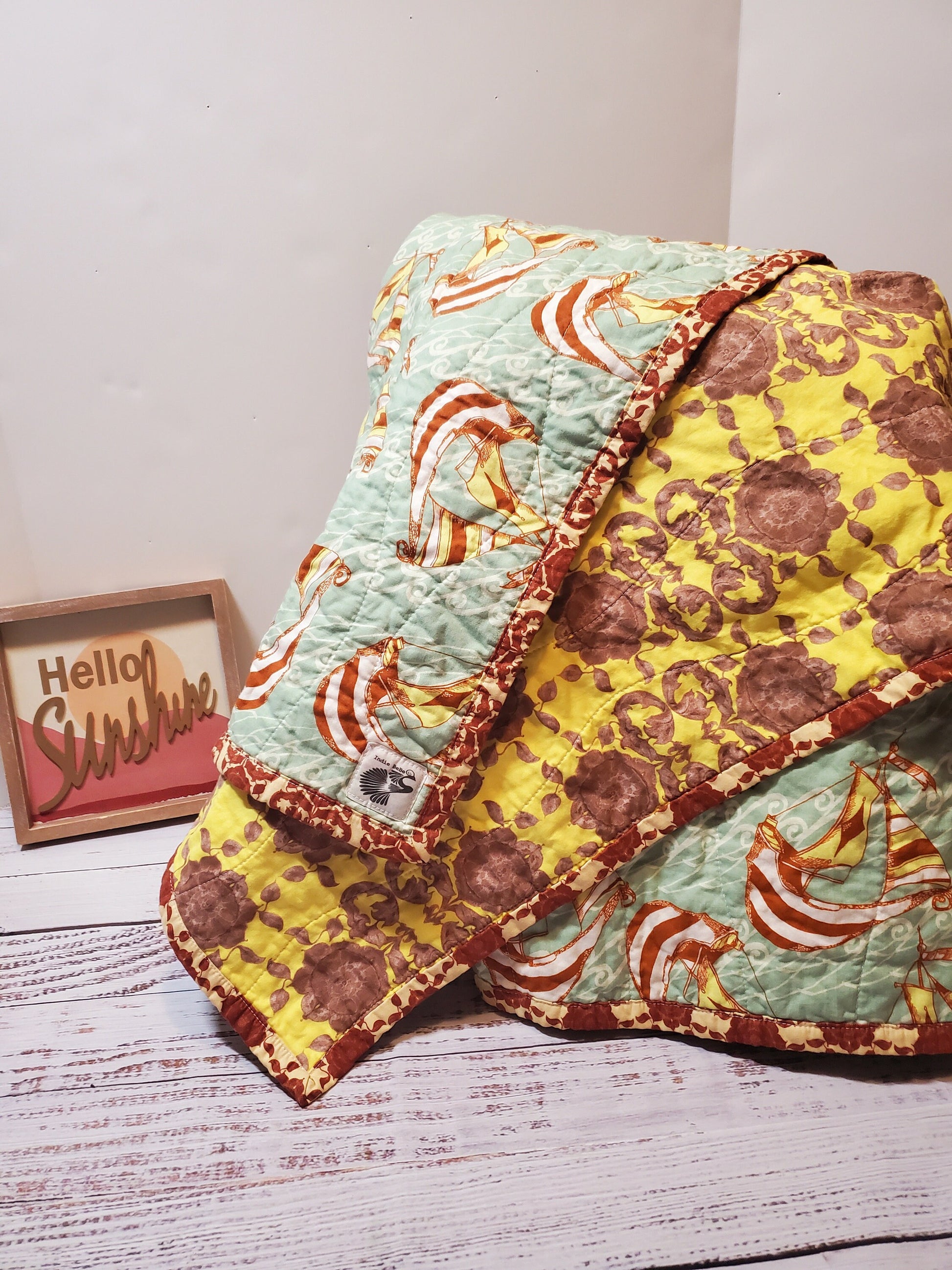 Wholecloth Quilt, Nautical Quilt, Boho Baby Quilt, Boho Baby Bedding, Baby Blanket, Baby Shower Gift, Boho Nautical Decor, Kantha Quilt